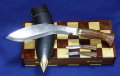 工房の鍛冶職人から「ヤギの頭を落とすのにちょうどよい大きさ」と評されるこの大型ククリはちょっとした脇差並みの重さがあります。キャンプ用には少々大げさかもしれませんが、ハンティングナイフとしては十分にその実力を発揮すると思われます。熊が出る山に入るときなどには是非携帯してほしい一本です。